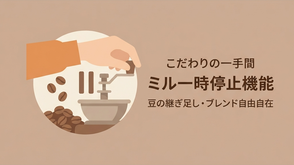 もう一つの地味ながら強力な進化点が、「ミル一時停止」機能です。