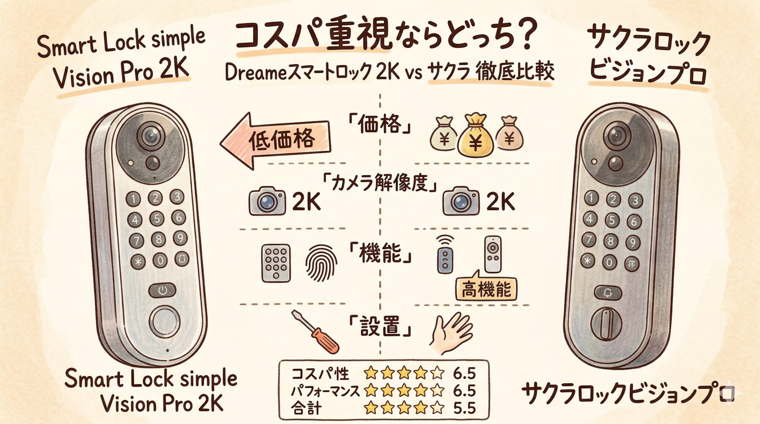 サクラロックビジョンプロも気になるところですが、公開情報を追っていくと、はじめて導入する人ほどSmart Lock simple Vision Pro 2Kのほうが合いやすい場面は少なくありません。