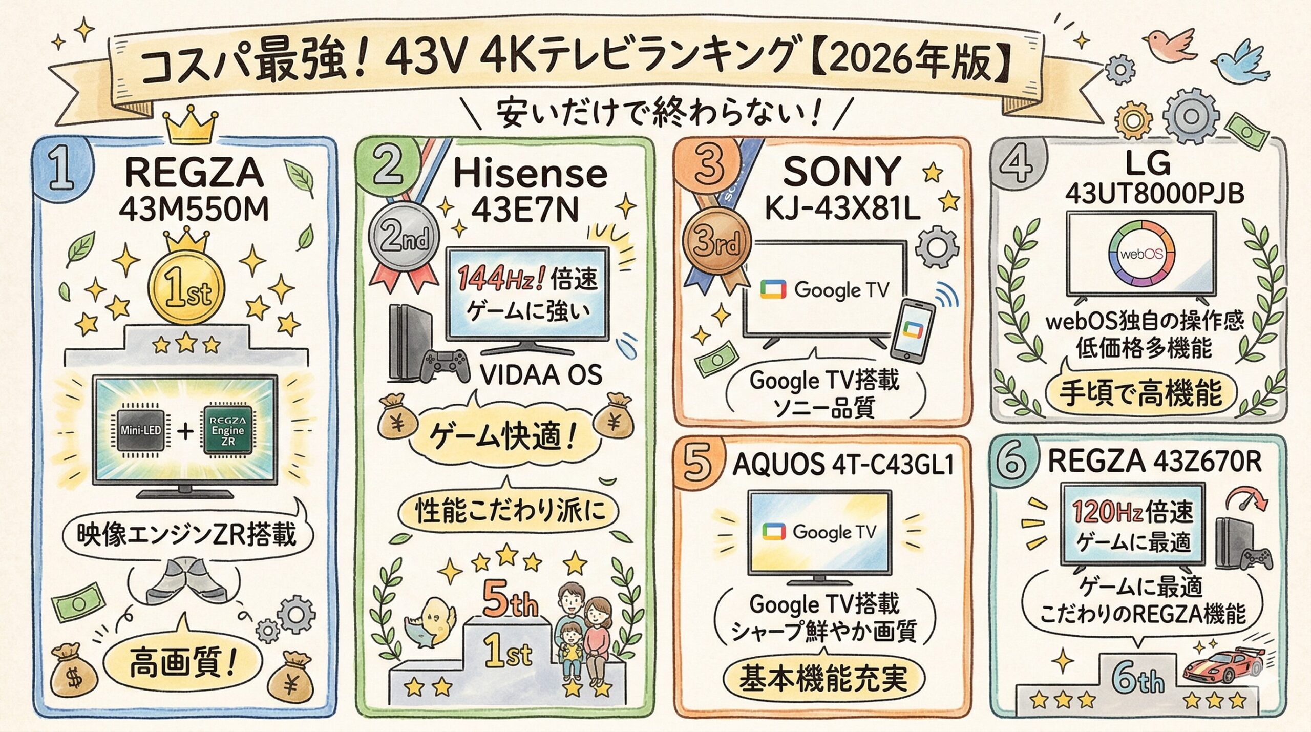 総合コスパでいちばん強いのは REGZA 43M550M です。