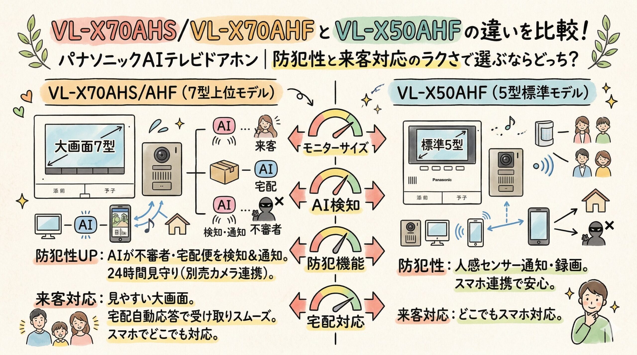 防犯性を高めたい戸建てファミリーで、価格差に見合う納得感を求めるなら、今は VL-X70AHF を軸に考えるのがいちばん分かりやすいです。