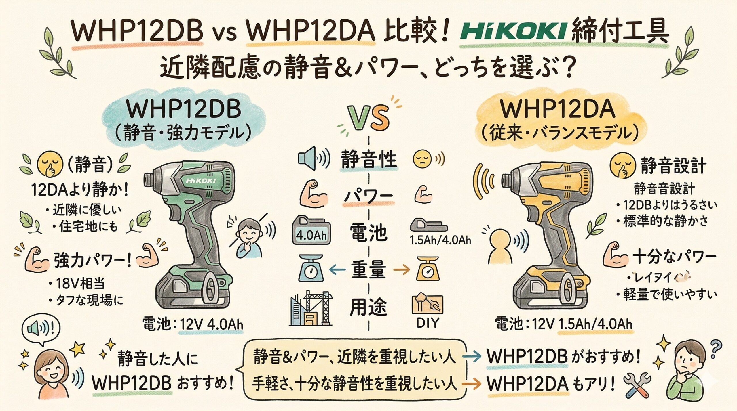 私はこの比較では、屋内作業を仕事で回す人ほど、WHP12DB の優位が大きいと見ます。