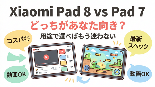 そこでこの記事では、Xiaomi Pad 8とXiaomi Pad 7の違いをスペック・価格・キャンペーン・用途の4つの軸でしっかり比較します。読み終えるころには「自分にはどちらが正解か」がハッキリ分かるはずです。