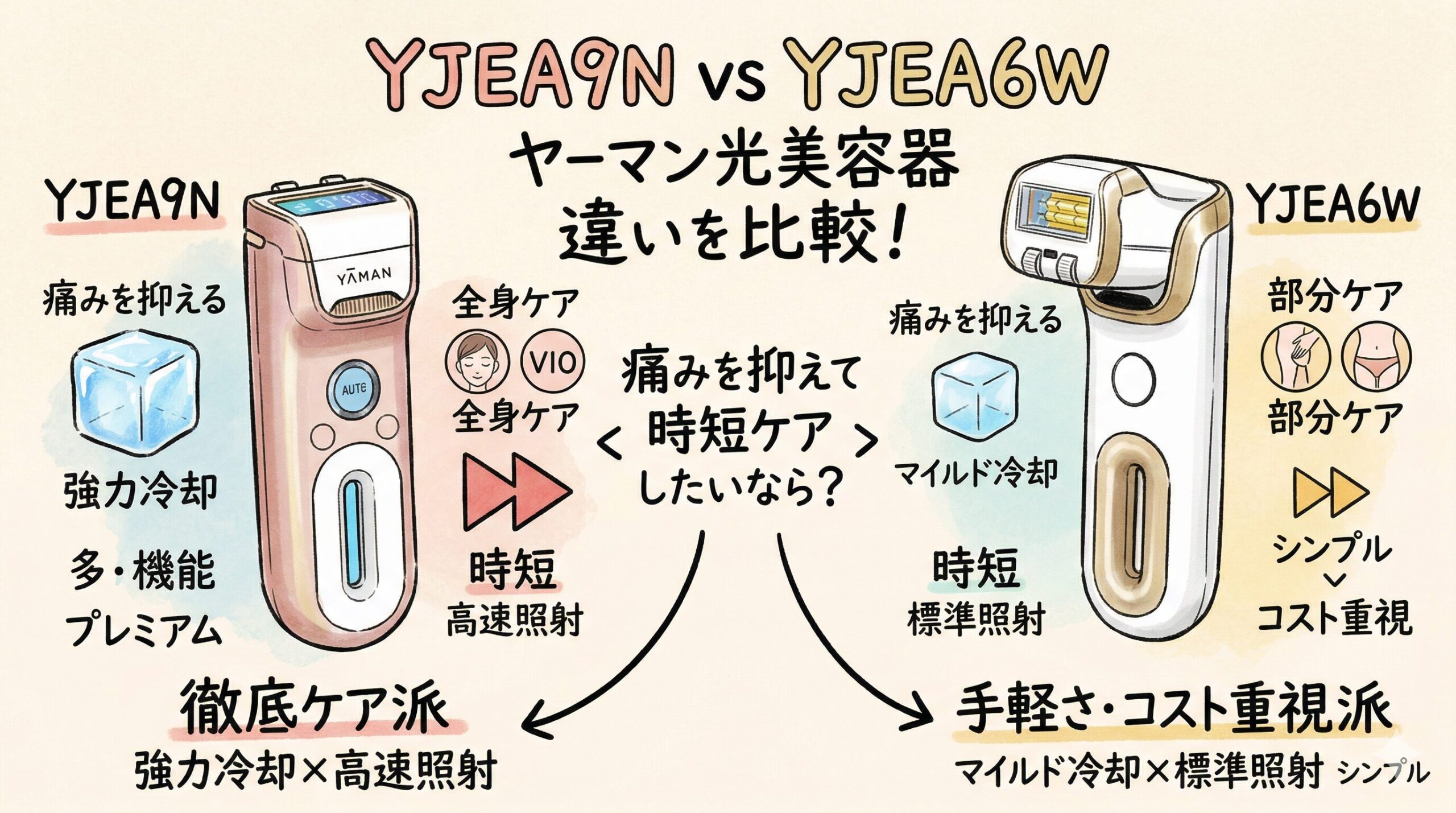 冷却強化やピンポイント照射に魅力を感じるならYJEA9Nですが、そこを強く求めないなら、値下がりしたYJEA6Wのほうが現実的な選択になる場合もあります。